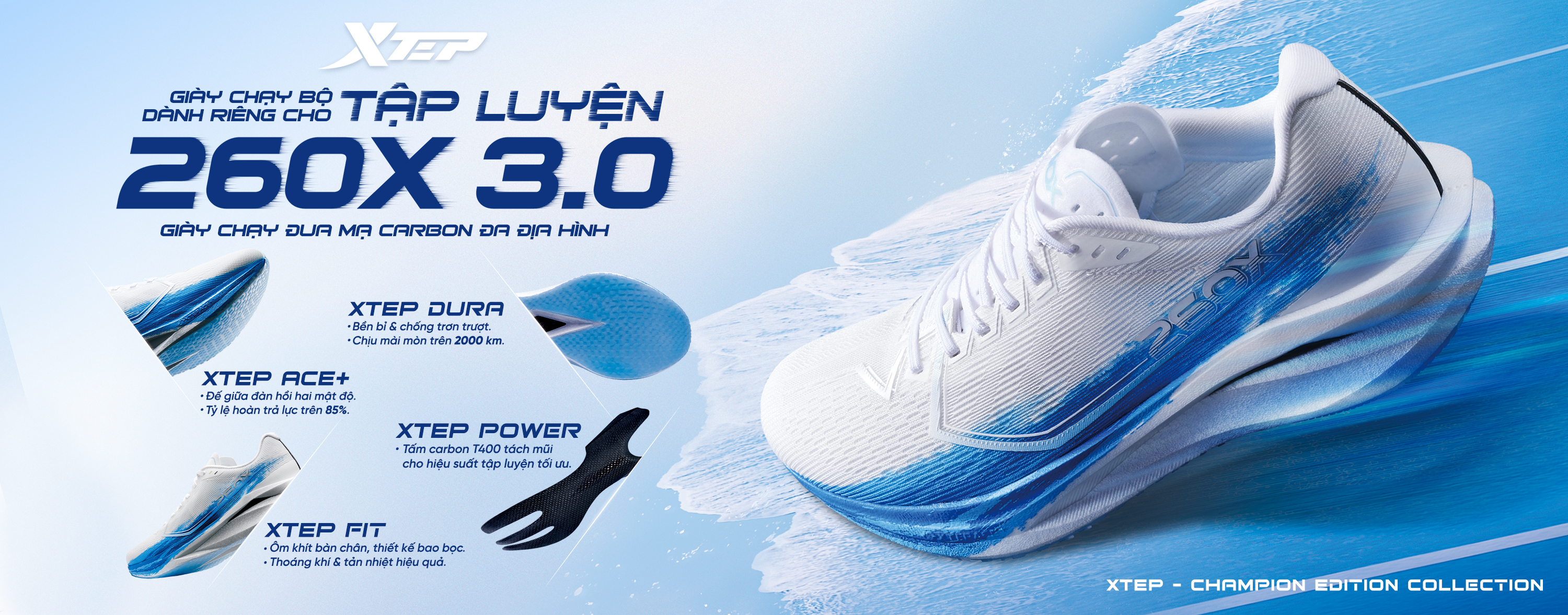 XTEP 160X 3.5 PRO là dòng giày chạy bộ cao cấp thuộc Champion Series – bộ sưu tập chuyên biệt dành cho vận động viên và người chạy chuyên...